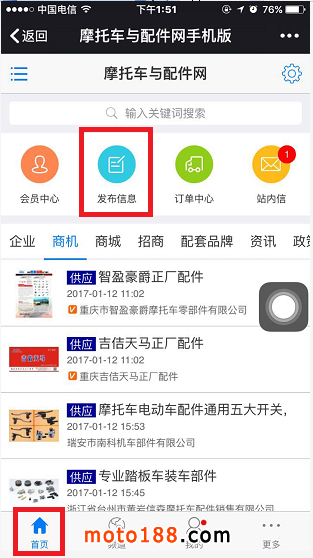 1.登錄成功后,在首頁(yè)上方點(diǎn)擊“發(fā)布信息”