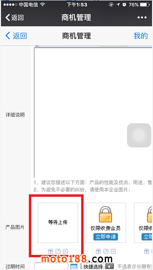 帶紅色星號(hào)為必填內(nèi)容,產(chǎn)品圖片處點(diǎn)擊可上傳圖片,目前普通會(huì)員只可上傳一張圖片