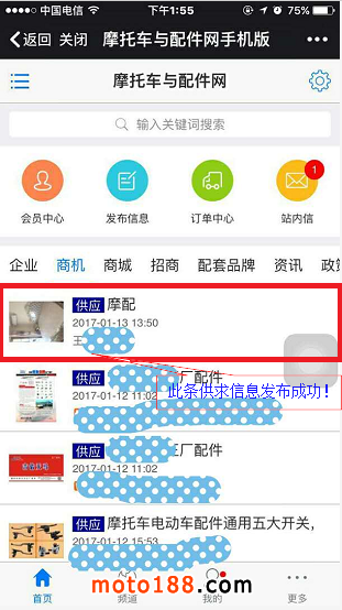 11.成功發(fā)布的信息在首頁(yè)-商機(jī)頻道可以看到