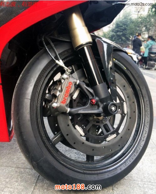 不要以為碳纖維就僅僅是覆蓋件,當(dāng)碳纖維輪轂的安裝會驚呆了我們的小伙伴,更輕的輪上質(zhì)量讓此臺1199無論是提速還是制動都先人一步。碳陶瓷剎車盤配合Brembo Racing輕金屬一體切削泵增加了剎車制動性,降低了熱衰減帶來的剎車疲軟。
