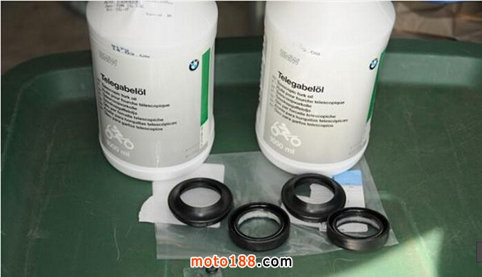 物料準(zhǔn)備:減震油一邊450ml,新的防塵蓋和油封: