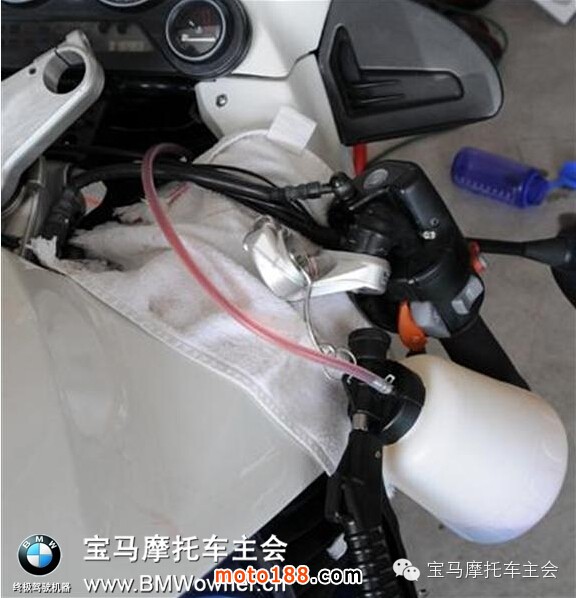 本可以用放油螺絲放掉前減震油的,但我這里正好有順手的抽油工具,就抽出來(lái)了。效果還不錯(cuò)。下邊是以前操作時(shí)候留的圖,只是給大家看看抽油機(jī)的樣子: