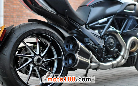 原廠排氣在全段的條件下,所得重量為10.15kg,而Termignoni全段排氣則為6kg,整體輕了4.15kg。對于原本重量僅205kg的Diavel Carbon,又再減輕4.15kg,在不提動力強化多少的前提下,輕量化就已經(jīng)是對整體動力與操控提升的最大優(yōu)勢??!