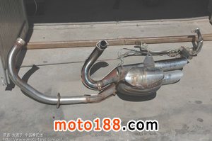 繼續(xù)拆,原車(chē)的消聲器,這么多年,竟然一點(diǎn)也沒(méi)有爛,很是出呼意料,成色鋼鋼的