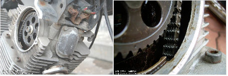 拆開(kāi)一看,膜穿孔了,油針卡簧還少一個(gè),用個(gè)鐵絲卡在上面,混合氣絲還是擰不動(dòng),哪個(gè)孔又很深,也看不到里面的狀態(tài)。