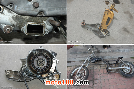 很久不玩大車(chē)了,無(wú)意中發(fā)現(xiàn)一輛舊的天王,跟車(chē)主聯(lián)系后,說(shuō)發(fā)動(dòng)機(jī)沒(méi)什么問(wèn)題,就是電路有問(wèn)題,發(fā)動(dòng)不著,以很便宜的價(jià)格拿到手,是雙油箱版的,應(yīng)當(dāng)是89年的,拿到車(chē)后,先把電路理了一下,實(shí)際上就是一個(gè)保險(xiǎn)絲有問(wèn)題,通電加油,一把就著,試騎了一下,基本上心中就有數(shù)了,接著開(kāi)始了漫長(zhǎng) 的翻新之路,此次翻新全是業(yè)余時(shí)間搞,本人非專(zhuān)業(yè)人士,全憑喜歡和愛(ài)好,高手們別見(jiàn)笑,多多指點(diǎn),此次翻新不是以換件為主,是先修,實(shí)在不行在換,以花最少的錢(qián)辦最大的事為原則,嘿嘿誰(shuí)叫咱是窮人來(lái)。