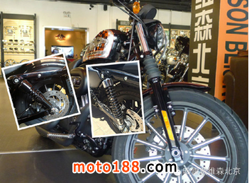 同時(shí),減震改為低短減震,使車座就比原來降低了112.5px,騎手坐在上面更加舒適,腳掌更容易接觸地面,從而操作控制機(jī)車更加容易自如,自然也增強(qiáng)了騎手駕車的自信。尤其是騎手坐在低矮的座位時(shí)手握平直車把,身體會(huì)自然前傾,腿往前伸雙腳踏在前置腳踏上,形成一種向匍匐前沖的戰(zhàn)斗者姿態(tài),也是哈雷硬漢騎士的風(fēng)采。
