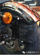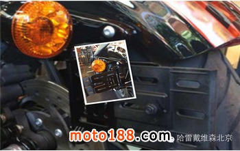 說到此,你恐怕疑惑車牌架在哪里呢?這也是限量套件的一個(gè)改裝特點(diǎn),條形燈的兩側(cè)是常規(guī)的兩個(gè)小尾燈,而就在左側(cè)尾燈的下方有一個(gè)可以展開回折的牌架,牌架上面有幾個(gè)小孔專為固定車牌設(shè)定。無論騎手是想讓車牌朝后還是朝左,只需輕輕折一下。哈雷如此精小的細(xì)節(jié)設(shè)計(jì),在給騎手自由隨意的體驗(yàn)同時(shí),也說明了哈雷的匠心獨(dú)運(yùn)。