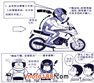 合理利用你的力量和體重,有利于發(fā)揮摩托車的性能。