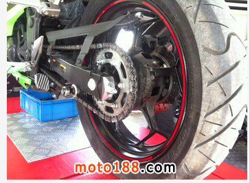 安裝過后輪起車釘、這時就派上大用處了、檢查后輪軸、輪胎氣壓、調(diào)整傳動鏈、松馳度都需要將后車輪騰空、不僅為自己節(jié)約了寶貴的時間、也方便了師傅們更快更好的完成各項檢查調(diào)整。