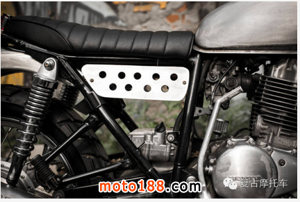 新西蘭奧克蘭大學(xué)對(duì)1000多輛各種顏色的汽車(chē)進(jìn)行了調(diào)查后發(fā)現(xiàn),淺色汽車(chē)遭遇車(chē)禍的概率比其他顏色的汽車(chē)低許多,特別是銀色汽車(chē)。主要原因是銀色屬冷色,反光更強(qiáng),這對(duì)于緊隨其后的司機(jī)來(lái)說(shuō)較為醒目。而且銀色汽車(chē)會(huì)產(chǎn)生視覺(jué)差,車(chē)體看起來(lái)更大,會(huì)讓其他司機(jī)更加警惕。下面我們就來(lái)欣賞來(lái)自honda cb400ss銀色簡(jiǎn)潔復(fù)古摩托車(chē)改裝作品。