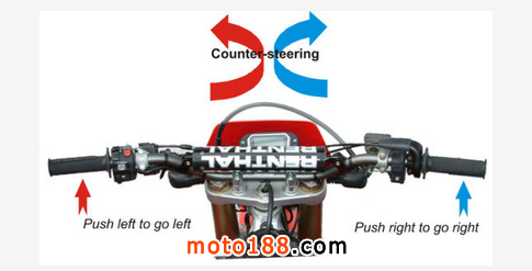“推胎”這個詞的發(fā)明無從考證,事實上這個詞也算不上很準確,不過約定俗成,在這里決定在本文中沿用這個詞。“反向轉向”準確定義是:在自行車和摩托車這種單軌跡行駛的車輛(指摩托車的兩個輪子沿同一條直線軌跡行駛;汽車四個輪子兩兩分別沿兩條直線軌跡行駛,就算雙軌跡行駛)上,向左轉動車把,車輛向右轉;向右轉動車把,車輛向左轉。車把轉動的方向和車輛將會行駛的方向相反。