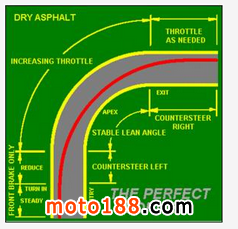 如何才能感受到“推胎操作”對摩托車行進軌跡的改變呢?在這里有一個很好的建議:選擇一條較空曠的馬路,勻速直線騎行(大概時速30公里左右,太慢了感覺不夠明顯),試著在安全的情況下,非常小心的向某方向輕推車把,這個時候,你會感覺到車子的走線開始向那個方向傾斜。在感受過幾次之后,可以嘗試著用推胎的方式進行變道超車,你會發(fā)現有意識的推胎變線會讓摩托車(尤其是運動型摩托車)變道變得非常輕松,整個動作完成的干凈利落。
