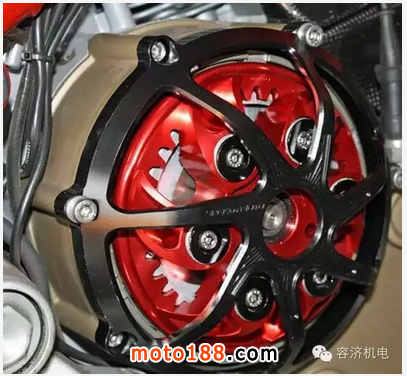 在不需要打洞/液體漏出的前提下,給濕式離合器的蓋子噴漆,或者換成透明的改裝蓋子;另外,濕式離合改干式離合是可能的,Moto Corse就研發(fā)出了1199 Panigale可以使用的干式離合器,不過價格嘛,哥只能呵呵了,4300美金起的售價應(yīng)該足夠打消你??岬?ldquo;幼稚”需求。