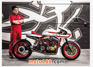美國洛杉磯的華裔摩托車愛好者Samuel Kao,在他的“家”中(JSK改裝設(shè)計(jì)室)打造了一款很有“想法”的現(xiàn)代版咖啡賽車,并取名為Ivory Comet(象牙彗星)。Samuel Kao(高榮杉)出生在中國臺(tái)灣省景美區(qū),小時(shí)候的他就對(duì)摩托車有著濃厚的興趣,一直向往有朝一日可以自行設(shè)計(jì)并制造摩托車。由于在臺(tái)灣用廢舊零件制造摩托車是非法的,為了達(dá)成自己的夢(mèng)想,在服完兵役之后毅然搬去了美國。(筆者想說:用廢舊零件制造機(jī)動(dòng)車,恐怕在大部分國家都是非法的,美國果然是個(gè)“自由國度”。)