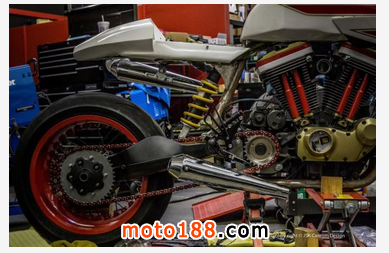 象牙代表高雅奢華,彗星表示速度和光芒四射,所以將這輛摩托車取名為Ivory Comet(象牙彗星)。這輛象牙彗星是高榮杉的心血力作之一,也是他最得意的作品。Ivory Comet保留了傳統(tǒng)咖啡賽車一體式整流罩、視覺重心水平線與地面保持平行和駝峰式座椅等的外形規(guī)則,采用一臺(tái)哈雷戴維森風(fēng)冷引擎,整車大部分全金屬部件遵循傳統(tǒng)木模工藝并由手工打造完成,訂制條幅輪轂。至于轉(zhuǎn)向機(jī)構(gòu)、制動(dòng)系統(tǒng)和單后搖臂,很難想象的是它們來自杜卡迪916。