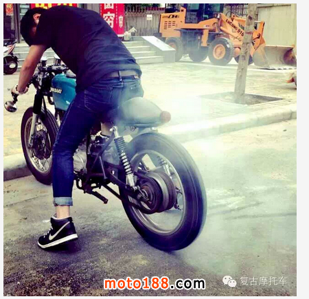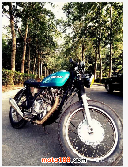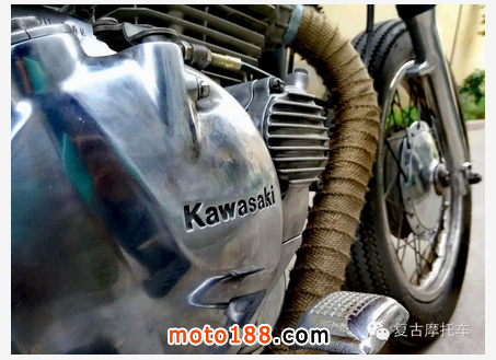 分離車把、駝峰坐墊,都標(biāo)志著他是一臺(tái)地道的cafe racer。為了讓整車的線條和輪廓更輕盈,車主有意去掉了前后擋泥板,甚至連轉(zhuǎn)向燈也被簡(jiǎn)化掉;車把則改用了小巧的建議簡(jiǎn)易開關(guān),使車把看起來(lái)更干凈利落。 鋸齒胎、防燙布更是已成為復(fù)古改裝的標(biāo)準(zhǔn)配件,讓整車更增添了古樸的味道。