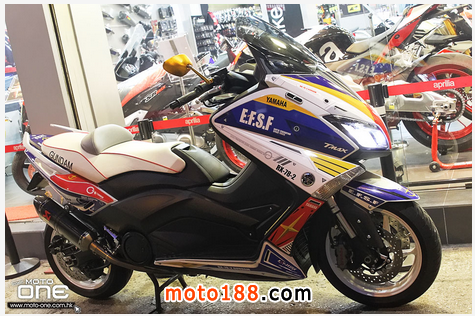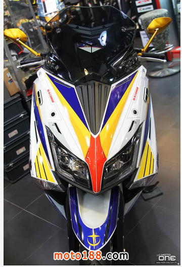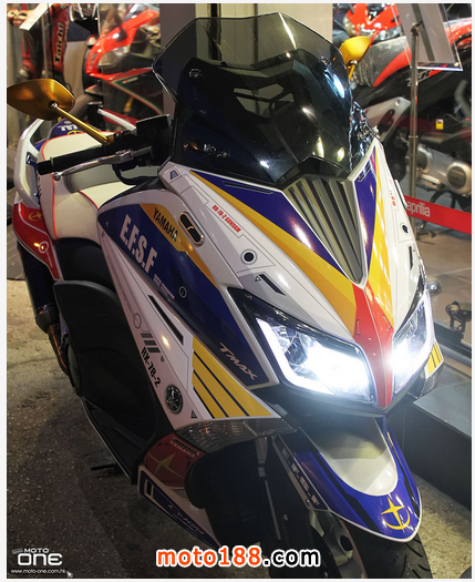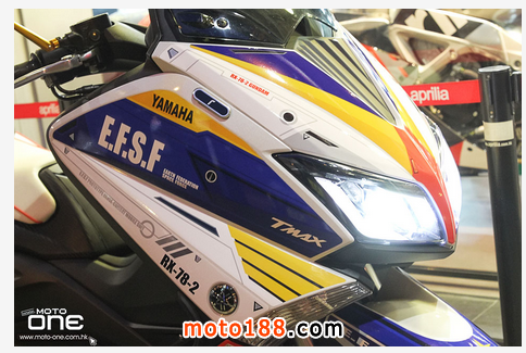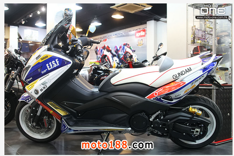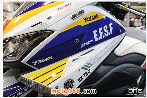 核心提示: 在本年初的一次活動(dòng)中已經(jīng)被這臺(tái)高達(dá)貼紙拉花的新款2015 T-MAX 530吸引,可惜當(dāng)時(shí)忙於拍攝活動(dòng),忘記拍攝車身細(xì)節(jié)。今天,在