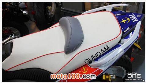 今次得到車主阿寶的同意拍攝及閑聊為何改裝,阿寶說希望新購買的2015 T-MAX 530有更特別的外觀,而自己屬標(biāo)準(zhǔn)的高達(dá)迷,所以新車未到己經(jīng)找了專家貼紙的設(shè)計(jì)與制作,取車時(shí)即貼上這迷人吸引的高達(dá)花。相對(duì)年初時(shí),現(xiàn)在這臺(tái)T-MAX 530還更換了金色的RIZOMA睹風(fēng)鏡,像似高達(dá)頭上的尖角。另外,也換上原廠的金色的腳踏板及重新打造仿高達(dá)身軀色彩的座椅,令整體外觀更特別出眾。