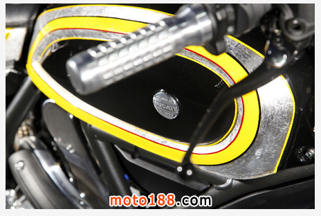 下圖:杜卡迪與倍耐力輪胎合作開發(fā)、Vibrazioni Art Design 負(fù)責(zé)操刀,名為 SC Rumble(SC 轟鳴)的改裝作品。