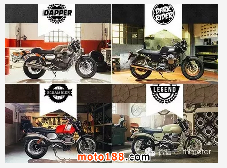 MOTO GUZZI推薦四種改裝風(fēng)格,這四種風(fēng)格獨(dú)特的V7改裝套件,都將讓V7成為焦點(diǎn)。MOTO GUZZI的所有配件均可任意搭配組合,單獨(dú)購買,滿足車主最瘋狂的想象力與創(chuàng)造力。