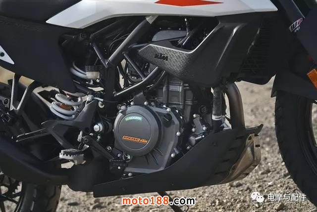 KTM 390 Adventure核心動力來自于一臺373CC單缸水冷四沖程發(fā)動機,匹配電噴系統(tǒng),符合國四排放標準。發(fā)動機最大功率為32千瓦,約43.5匹馬力,最大扭矩為37牛米。油箱容積為14.5L。