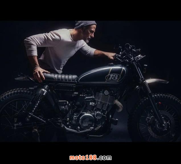 這臺黑色的咖啡車型是由一臺2015年的雅馬哈SR400改裝而來,以斜紋金線裝飾的油箱上,寫著13號的字樣,整臺車最精美的部分要屬這個單座的衍縫皮革座位,非常的精致。