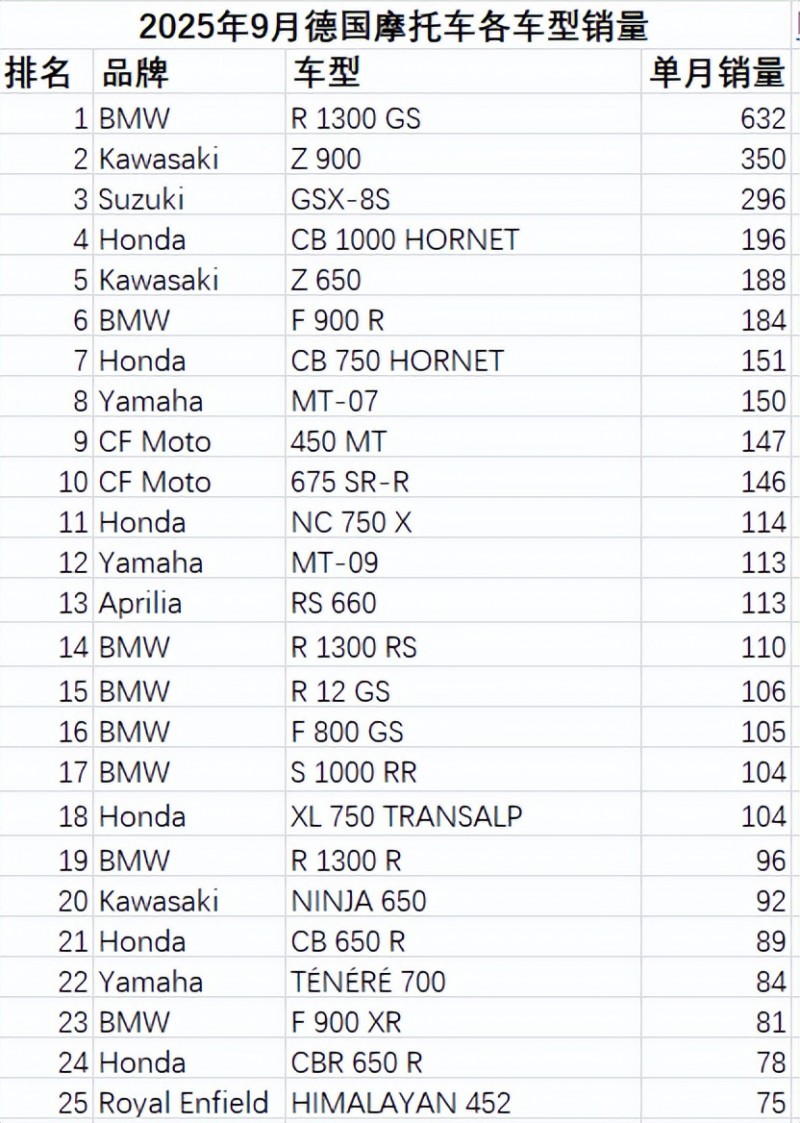 2025年9月德國摩托車市場銷量簡報